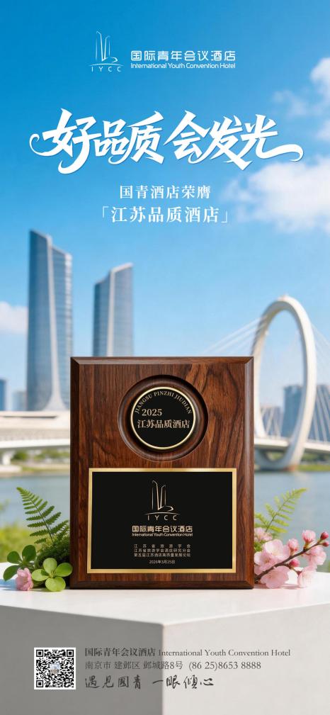 品牌金帆|金帆(青奥城)公司国际青年会议酒店荣获“江苏品质饭店”称号