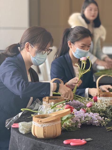 3月7日下午,国际青年会议酒店举办生活美学小课堂,邀请专业老师向女职工介绍了中国花道的历史,详细讲解了不同花材的选用、插花步骤和造型搭配,并带领大家自己动手制作插花。
