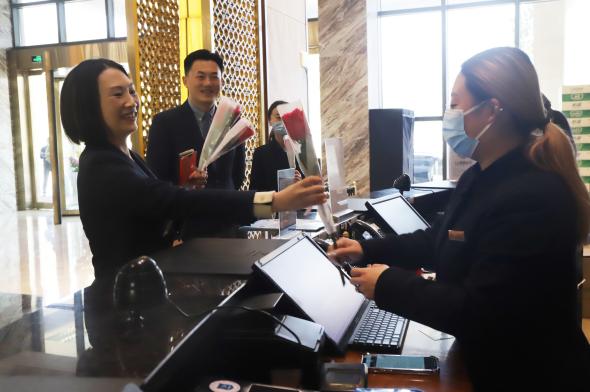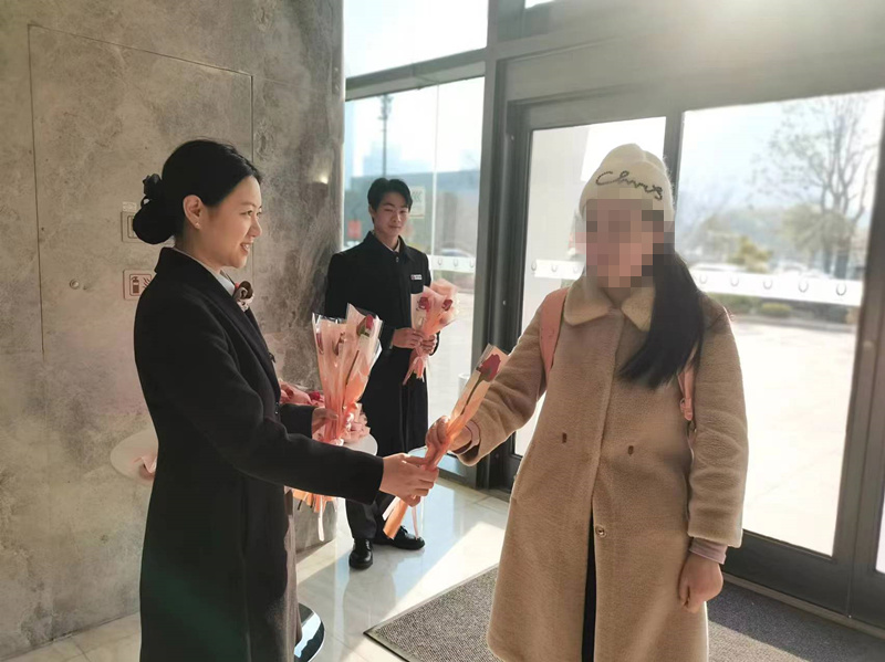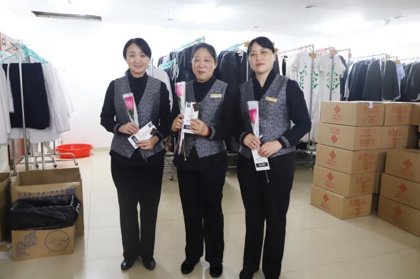 3月8日当天,金陵江滨酒店开展了女职工慰问活动,向当天奋战在工作岗位的女职工送上精美的小礼物和玫瑰花,祝她们节日快乐,永绽芳华。