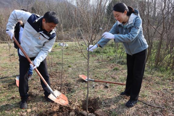 草长莺飞,春意盎然。活动现场,参加活动人员两人一组,拿起铁锹,分工协作。挖土、放苗、填土、压实……齐心协力,在进一步深化地方国企与中央企业结对共建的同时,用实际行动践行习近平生态文明思想,弘扬人人爱绿植绿护绿的文明精神。