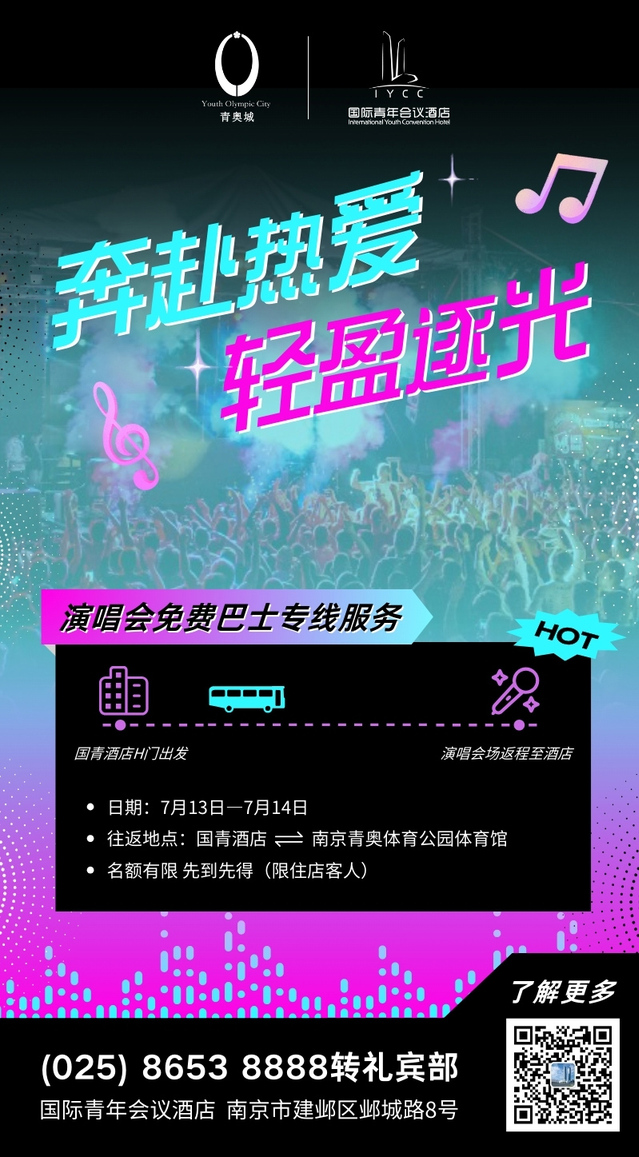 奔赴热爱 轻盈逐光 | 国青酒店开通演唱会免费巴士专线服务~