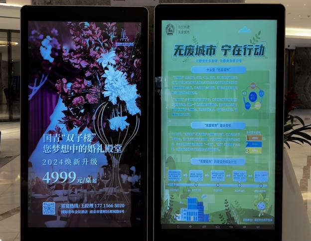 在酒店各餐厅内,餐桌显著位置均摆放了“光盘行动”宣传卡、南京市“无废城市”市民公约。在后厨区域,厨房根据原材料实际使用情况实时调整采购数量,严格把控库存使用量。在客房内,国青酒店自开业以来始终执行客房床上用品“一客一换”制度,每间客房都摆放了免换洗的提示卡。酒店在大堂宾客必经之处的屏幕上循环播放“无废”宣传海报,并设置了倡议反馈渠道。