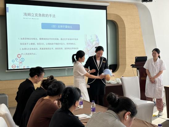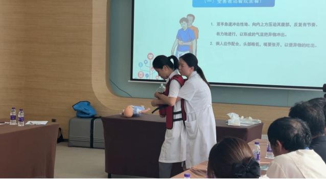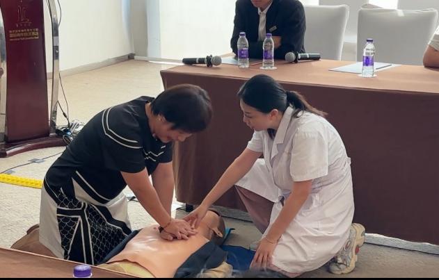 “找准定位,身体前倾,手臂伸直,要有力度注意发力点……”老师采用“理论授课+实际操作”相结合的形式,为大家讲解了常见急症的前兆和应对方法、心肺复苏的正确步骤、AED的正确使用方法以及海姆立克急救法,并通过心肺复苏模拟人开展实际操作,逐一指导参训职工掌握正确的救护步骤、姿势、位置、力度、频率等,使参训人员在遇到突发状况时,做到“技能在身,正确施救”。