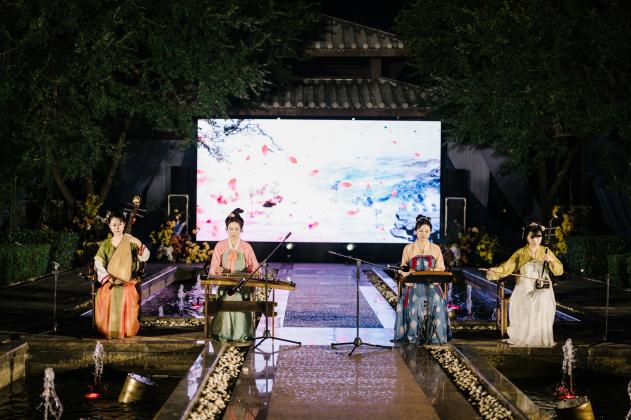 晚会在南京江滨之畔-金陵江滨酒店举行,现场布置了传统剪纸、宋式点茶、手工香囊等多项南京特色非遗活动,让客户在园林美景中,感受传统文化的独特魅力。