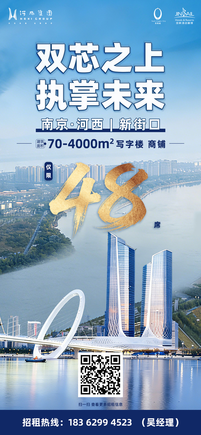 金帆(青奥城)公司的南京国际青年文化中心5A甲级写字楼建筑面积约5.1万m,位于项目北塔7-36层,领航文化商务新地标,感受流动式办公新体验。公司正以“双芯”之力激活城市发展新动能,诚邀全球优质品牌携手,共同书写商业与城市共生共荣的新篇章,执掌属于未来的无限机遇。