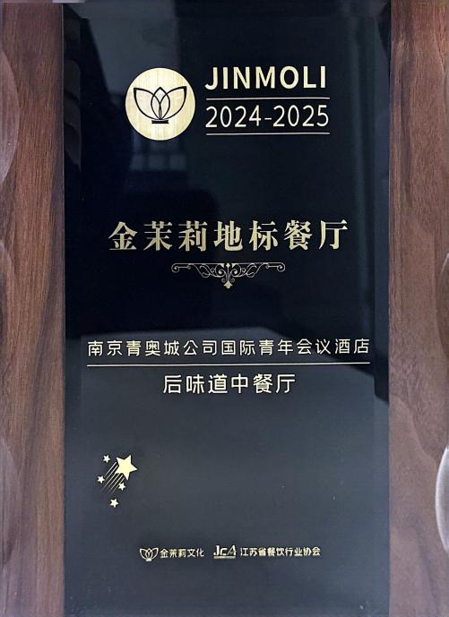 喜报|青奥城公司国青酒店后味道·中餐厅获评“2024金茉莉地标餐厅”