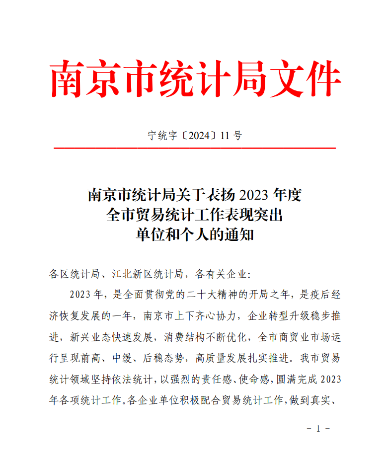 河西集团青奥城公司获评2023年度南京市贸易统计工作先进单位