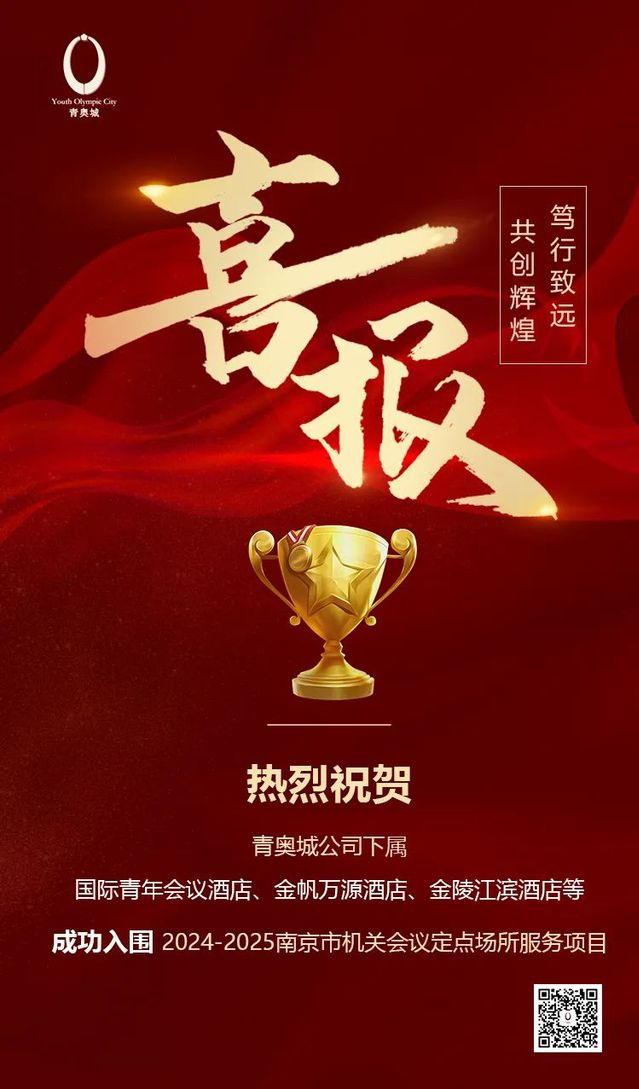 近日,青奥城公司下属国青酒店、金帆万源酒店、金陵江滨酒店等多家酒店,凭借丰富的会务接待经验,优越的餐饮住宿环境,卓越的服务水准,集体入围2024-2025 年南京市机关会议定点场所服务项目。据悉,青奥城公司下属...